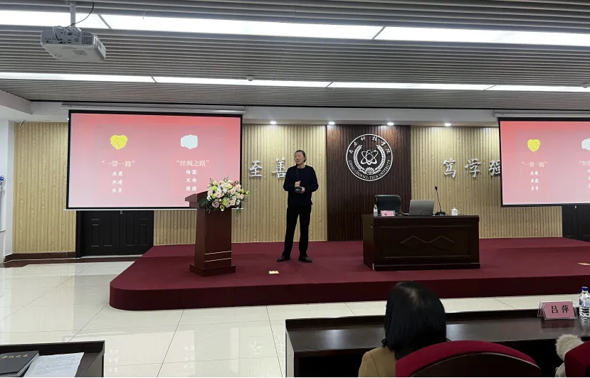 孙一教授围绕“丝绸之路上的家国情怀”的主题,以丝绸之路为背景,将家国情怀与时政教育紧密结合,通过生动的讲述和丰富的历史案例,为师生们展现了一幅波澜壮阔的历史画卷。他详细讲解了丝绸之路的历史渊源,以标志性的历史事件和历史演变进程中涌现出的英雄人物为线索,凝练出蕴含在丝路发展中的民族精神和家国情怀,同时结合当前国际形势,阐述了家国情怀在新时代的重要意义,鼓励师生不忘初心,牢记历史使命,为实现中华民族伟大复兴的中国梦贡献自己的力量。