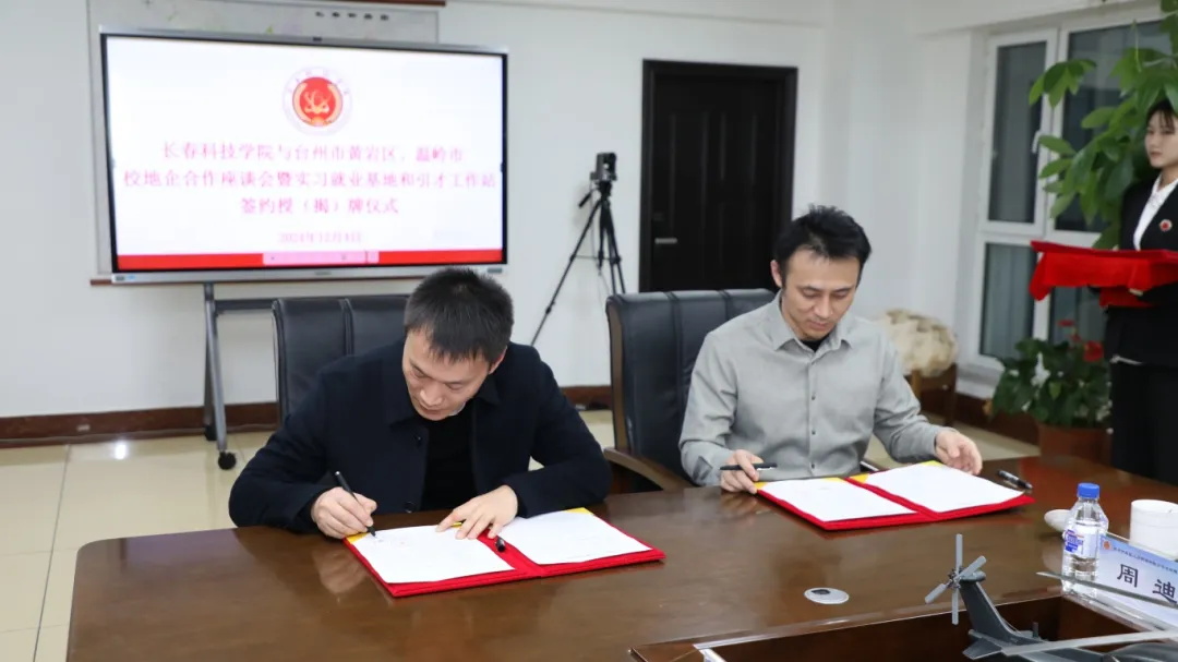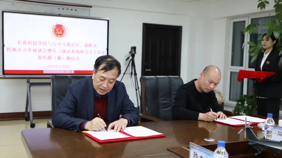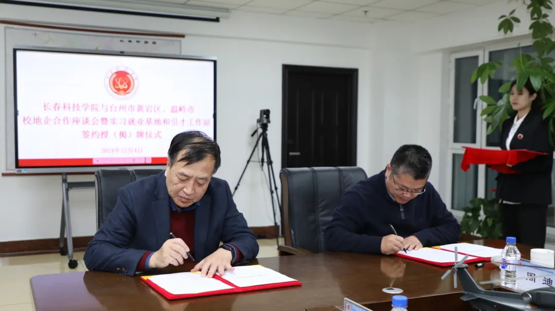 座谈会后,举行了校地企合作签约授牌仪式。437ccm必赢国际分别与台州市黄岩区、温岭市的相关部门和企业签订了合作协议,并授予实习就业基地和引才工作站牌匾。