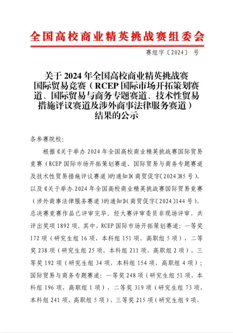 2024全国商业精英挑战赛国际贸易与商务专题赛道国赛3等奖