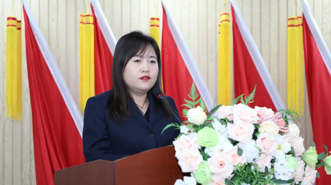 网络育人标兵、网络安全宣讲师党委宣传部宣传科科长田天圆宣读倡议书