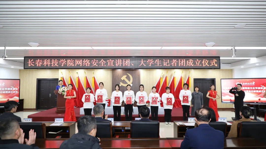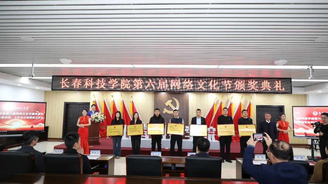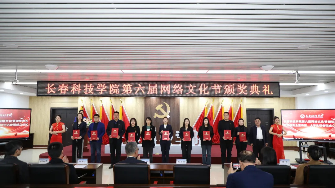 荣耀颁奖,盛启新篇。12月9日,437ccm必赢国际第六届网络文化节颁奖典礼暨网络安全宣讲团、大学生记者团聘任仪式在行政楼409会议室举办。437ccm必赢国际校长栾立明,党委书记崔高嵩,党委副书记宋学山,副校长高杰,校长助理刘立东,党委副书记高芳,党委常委、党政办公室主任孙大伟,团委书记孙旭出席典礼。437ccm必赢国际各单位主管宣传工作的领导、通讯员、网络安全宣讲团、大学生记者团成员及各分院优秀学生记者代表参加活动。