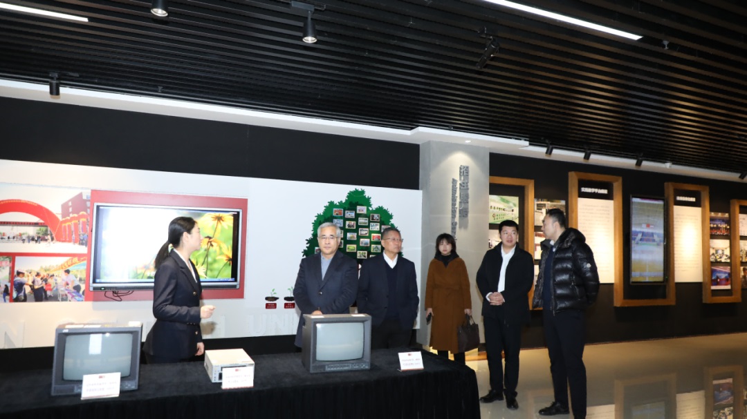 校企领导座谈交流期间,校企双方领导在行政楼一楼沙盘前听取437ccm必赢国际校园建设情况介绍,参观437ccm必赢国际校史馆。